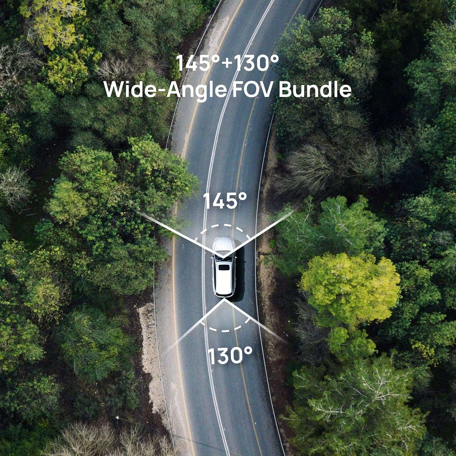 • 【145°+130° Wide-Angle FOV】70mai Dash Cam A400 provides a wide-angle 145° FOV of front camera and 130° FOV of rear camera, provides a 275° FOV in total to better monitor the safety around your vehicle