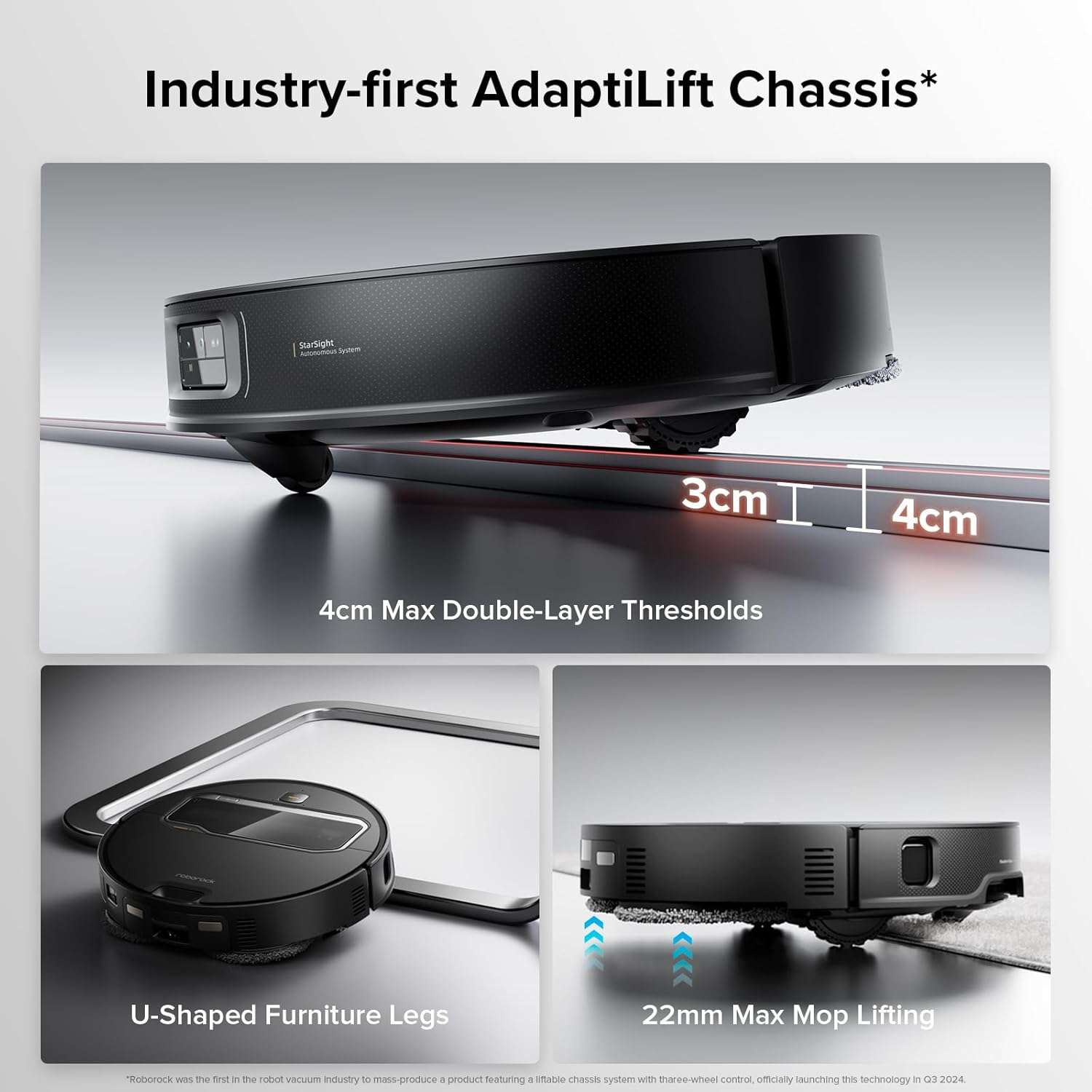 • Ultimate Cleaning Coverage – Intelligent Multi-Pass Cleaning: Forget pre-cleaning! The Saros Z70 detects, marks, and lifts obstacles in its first pass, returning to clean previously blocked areas. With its FlexiArm Riser Side Brush and Mop, it reaches deep into corners and edges, ensuring 100% floor coverage*. The AdaptiLift Chassis automatically adjusts to different surfaces, climbing thresholds up to 4cm* and lifting its mop up to 22mm* on carpets