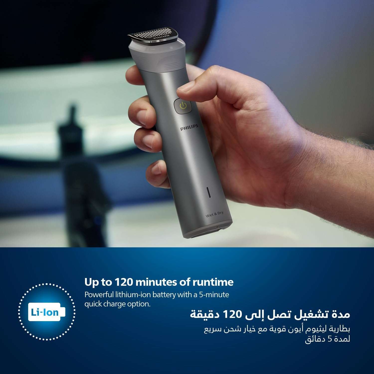 PHILIPS Multigroom Series 5000 11-i-1 All-in-One Trimmer MG5930/15 cihazından təhlükəsiz və optimal istifadə üçün aşağıdakı qaydalara əməl edin: Təraş aparatını sudan uzaq saxlayın və elektrik cərəyanı vurma riskini azaltmaq üçün istifadə edilmədikdə şəbəkədən ayırın. Bıçaqlarla ehtiyatla davranın, çünki onlar öz-özünə itilənəndir və xüsusilə həssas dəriyə malik istifadəçilər üçün kəsiklərə səbəb ola bilər. Bakteriya yaranmasının qarşısını almaq və bıçaqların iti qalmasını təmin etmək üçün cihazı mütəmadi olaraq təmizləyin və istehsalçının baxım təlimatlarına əməl edin. Məhsul təsviri: Üz, baş və bədən üçün nəzərdə tutulmuş 11 keyfiyyətli alətə malik bu universal trimmer ilə şəxsi görünüşünüzü formalaşdırın. Öz-özünə itilənən paslanmayan polad bıçaqlar yağlama tələb etmədən ilk günkü kimi iti qalır və dəqiq kəsim təmin edir. İstehsalçıdan: MG5930/15 əsas banneri. Bir alət – tam üslublandırma, üz, saç və bədən üçün. Üz, baş və bədən üçün hamısı bir yerdə. Bu all-in-one trimmer bütün baxım ehtiyaclarınız üçün 11 alət təqdim edir. Üz tüklərinizi rahatlıqla kəsin və formalaşdırın, saçınızı qısaldın və bədəninizi səliqəyə salın. Bərabər kəsim və iti konturlar əldə edin. Trimmer və çoxdişli daraq dəsti 1 mm dəqiqliklə 0.5-16 mm arasında 11 uzunluq ayarı təklif edir və həm qısa, həm də uzun saqqal üslubları üçün idealdır. Metal trimmerlə yanaqlar, çənə və boyun nahiyəsində dəqiq konturlar yaradaraq görünüşünüzü tamamlayın. Bədən tüklərinə vida edin. Boyundan aşağı nahiyələr üçün nəzərdə tutulmuş bədən təraş başlığı ilə rahat təraş edin. Unikal dəri qoruma sistemi həssas sahələri qoruyaraq 0.5 mm-ə qədər yaxın kəsim imkanı yaradır. Kliklənən daraq vasitəsilə bədən tüklərini də qısalda bilərsiniz. Evdə saç kəsimi. Çoxdişli daraq sistemi ilə 0.5-16 mm uzunluq aralığında seçim edərək saç düzümünüzü ev şəraitində formalaşdırın. Qulaq və burun tüklərini asan və rahat kəsin. All-in-one trimmer istənməyən burun və qulaq tüklərini tez və təhlükəsiz şəkildə aradan qaldıraraq kəsiklərin qarşısını alır. Uzunömürlü və dəqiq nəticələr. Paslanmayan polad bıçaqlar uzun müddət ilk günkü kimi iti qalır, yağlama tələb olunmur. Saqqalınıza uyğunlaşan trimmer. Cihaz saqqal sıxlığını saniyədə 125 dəfə skan edir və gücü ehtiyac olan anda artıraraq sıx və qalın saqqallarla asanlıqla mübarizə aparır. Bir doldurma ilə 4 həftə işləmə müddəti. Güclü litium-ion batareya 120 dəqiqəyə qədər istifadə müddəti və 5 dəqiqəlik sürətli doldurma imkanı təqdim edir. Suya davamlı dizayn. Trimmer duşda rahat istifadə və axar su altında asan təmizləmə üçün suya davamlıdır. Doldurma vaxtını həmişə bilin. Batareya indikatoru batareyanın vəziyyətini göstərir: zəif, boş, doldurulur və ya tam dolu. Rahat tutuş və tam nəzarət. Erqonomik rezin tutacaq sayəsində cihaz əlinizdə möhkəm saxlanılır və maksimum rahatlıqla idarə olunur. Məhsul adı: Philips All-in-One Trimmer MG5930/15 | 11-i-1 Üz, Saç və Bədən üçün Baxım | Burun və Qulaq | Simsiz 120 dəq, Duşda istifadə üçün uyğundur.