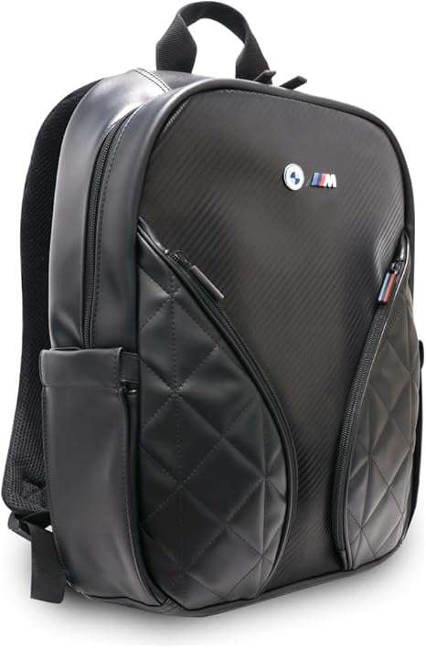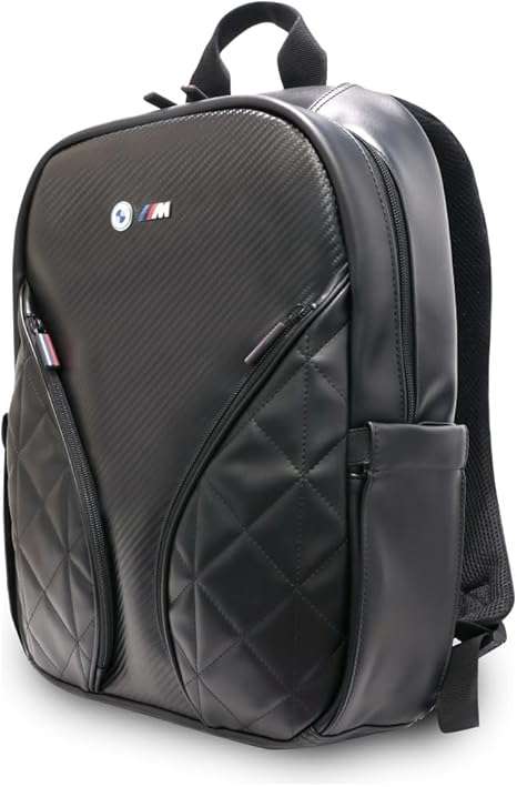 Model: BMW M Collection Carbon PU Leather Carry-On Backpack 15" – Expandable Travel Weekender Bag, Airplane Approved, Lightweight Laptop Backpack for Men & Women - Black