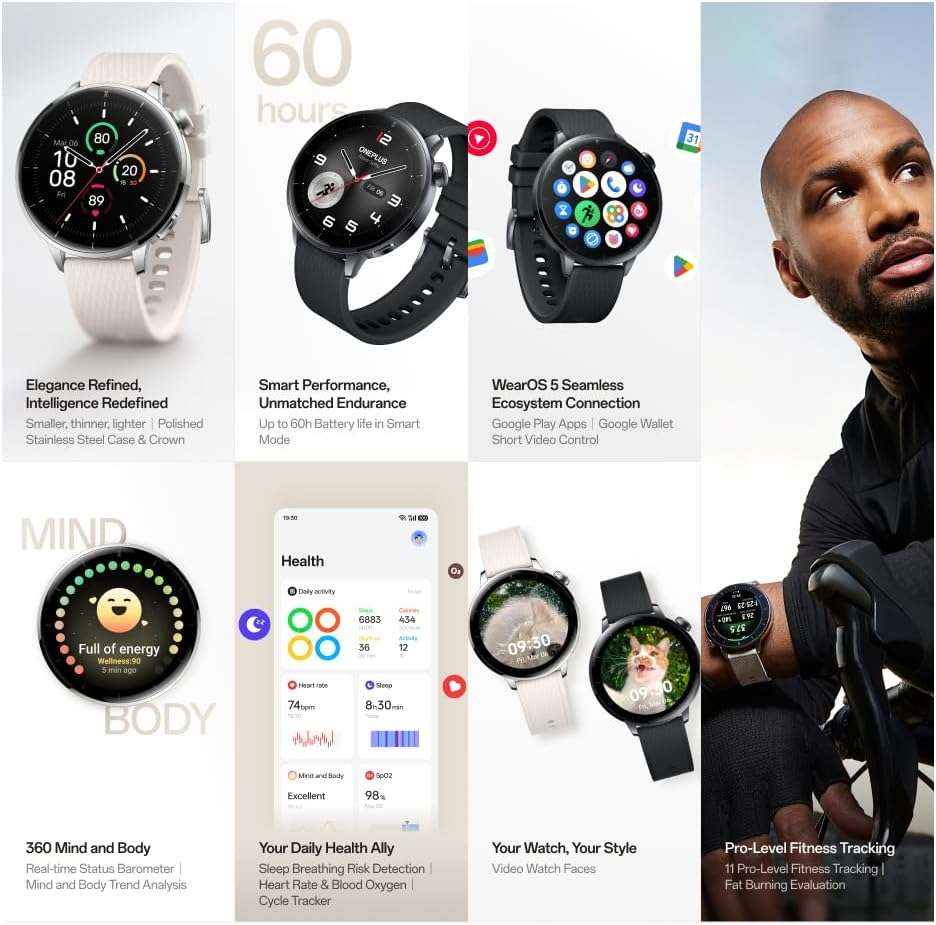 • Model: OnePlus Watch 3 Smartwatch – 43mm Stainless Steel Case, IP68 & 5ATM, 60H Battery, 100+ Sports Modes, Health Tracking – Black Steel