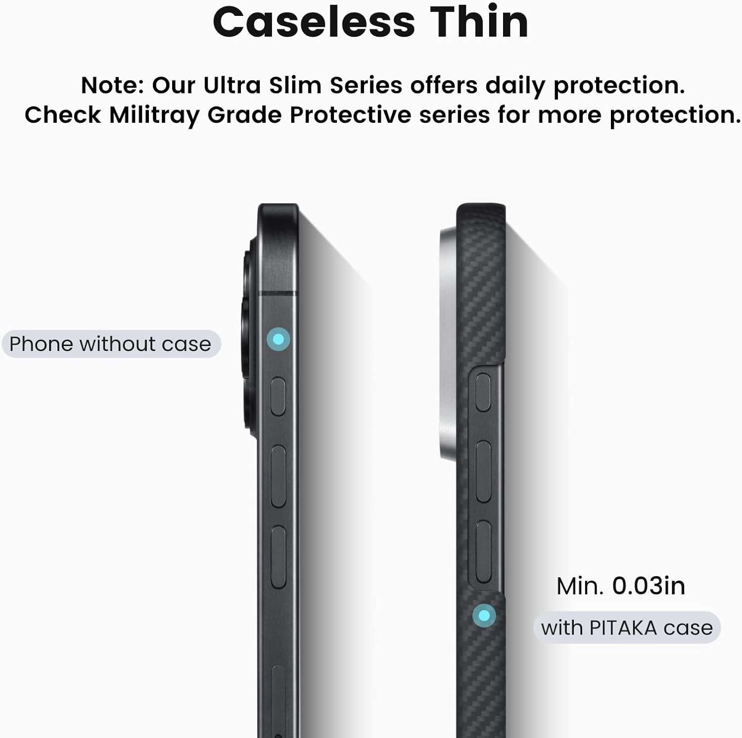 Model: Pitaka for iPhone 16 Pro Max Case Compatible with MagSafe, Thin & Light Case iPhone 16 Pro Max with a Caseless Feel, 1500D Aramid Fiber Woven [Tactile Woven Case] (Black)