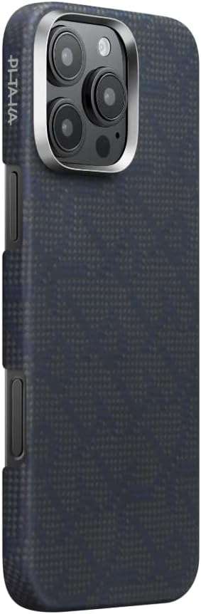 Model: Pitaka for iPhone 16 Pro Max Case Compatible with MagSafe, Thin & Light Case iPhone 16 Pro Max with a Caseless Feel, Aramid Fiber Woven [Monogram Tactile Woven Case] (Black/Blue)
