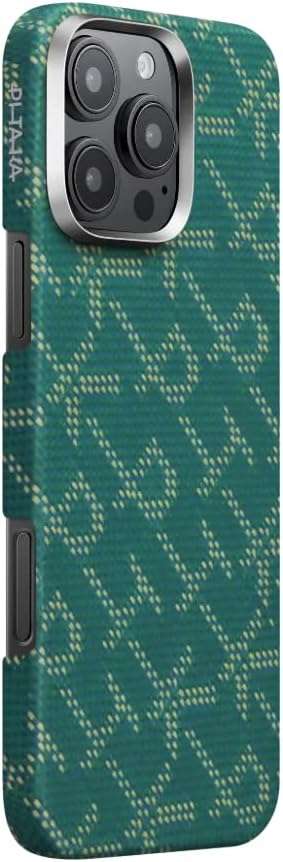 Model: Pitaka for iPhone 16 Pro Max Case Compatible with MagSafe, Thin & Light Case iPhone 16 Pro Max with a Caseless Feel, Aramid Fiber Woven [Monogram Tactile Woven Case] (Green/Gold)
