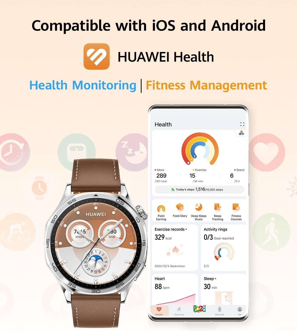 • Модель: HUAWEI Watch GT 5 46 mm Smartwatch, Stylish Design, New Running and Cycling Mode, Health Monitor, 14 Days Battery Life, iOS and Android, Brown
