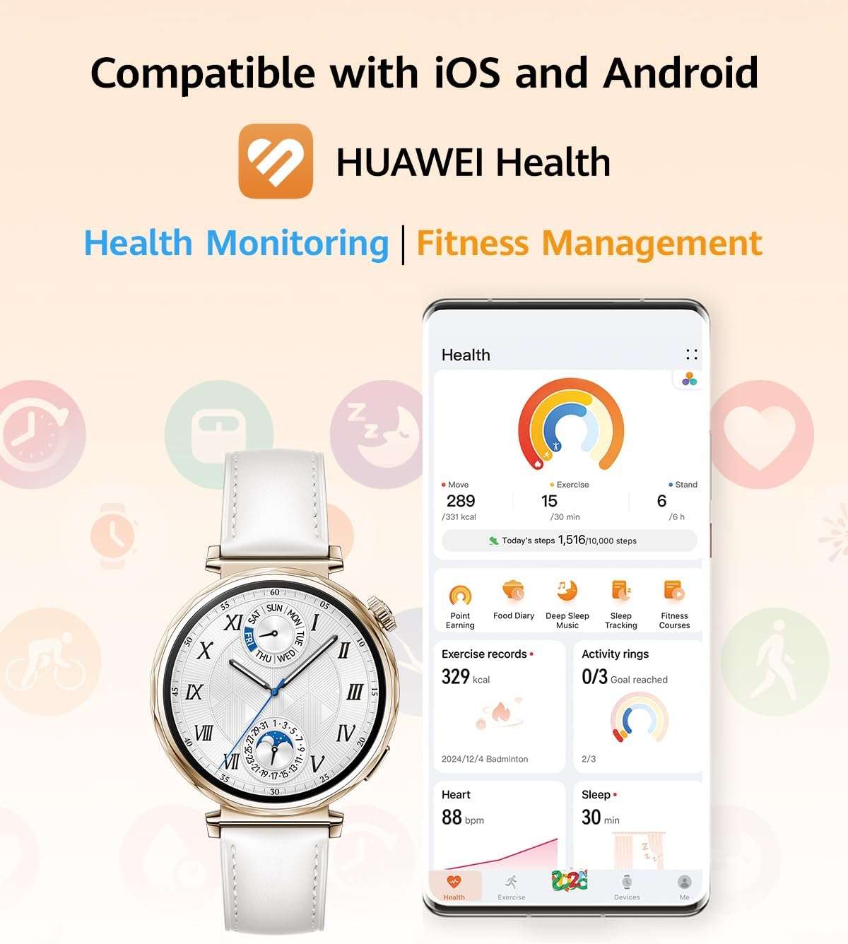 • Модель: HUAWEI WATCH GT5 41mm Smartwatch, upto7 Days Battery Life,Sharp-Edged Design Watch, Health Tracking, iOS & Android Compatible, White