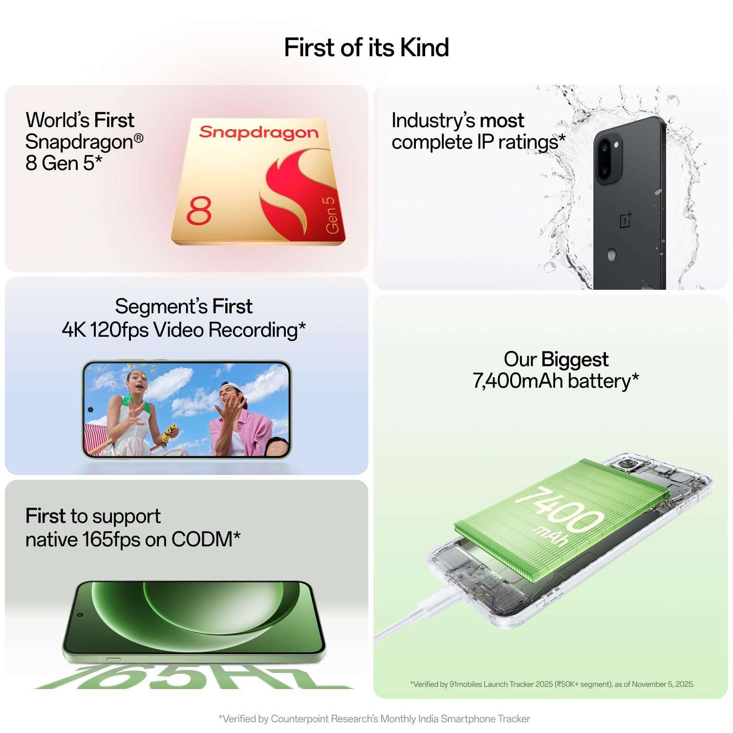 Первый в мире Snapdragon 8 Gen 5 — OnePlus 15R высвобождает душу дракона. В сочетании с LPDDR5X Ultra и UFS 4.1 процессор Snapdragon 8 Gen 5 — это настоящий шторм производительности, бьющий рекорды бенчмарков: каждое касание мгновенное, приложения открываются молниеносно, а игры в 120 FPS идут по-настоящему плавно.