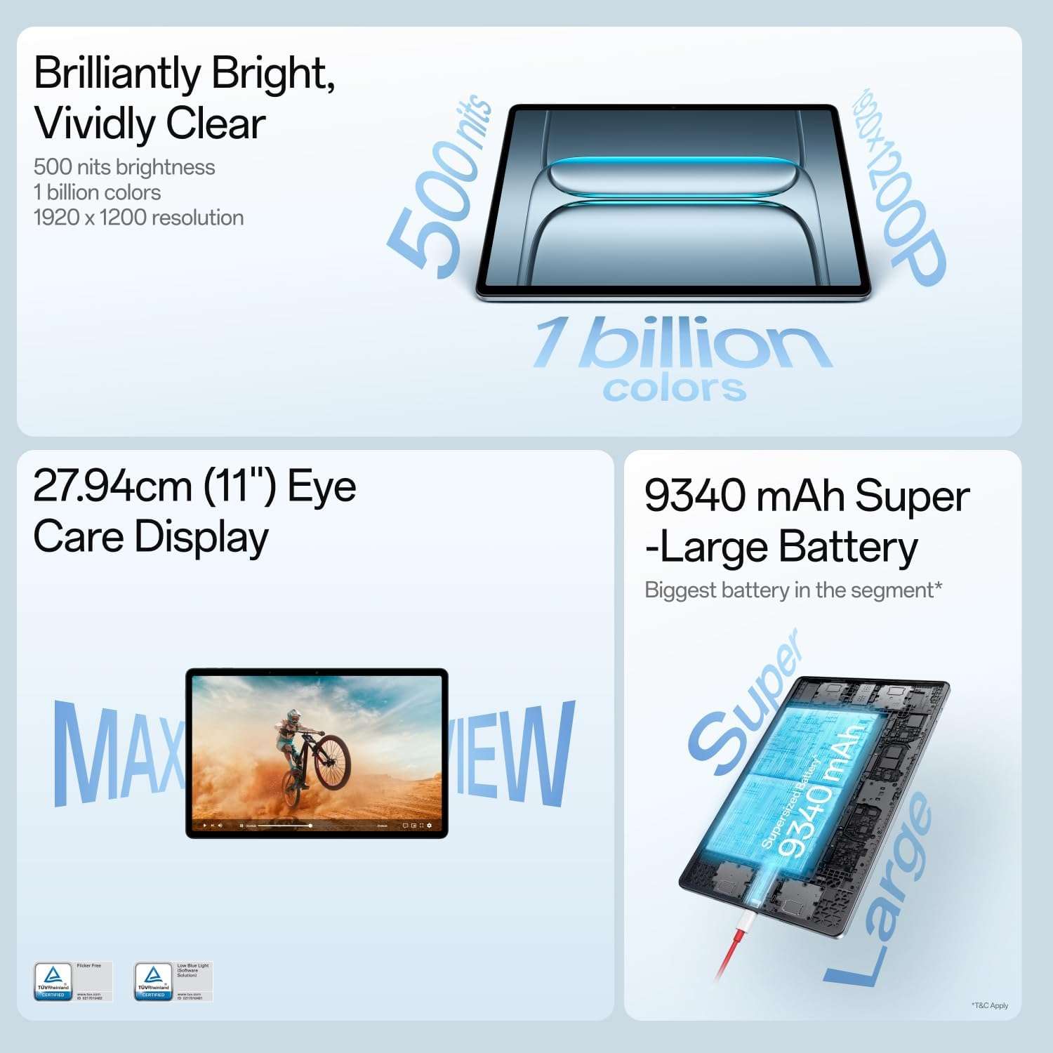 Яркость 500 нит, поддержка 1 миллиарда цветов, разрешение 1920×1200, большой экран 11 дюймов (27,94 см), соотношение сторон 16:10 и частота обновления 90 Гц.